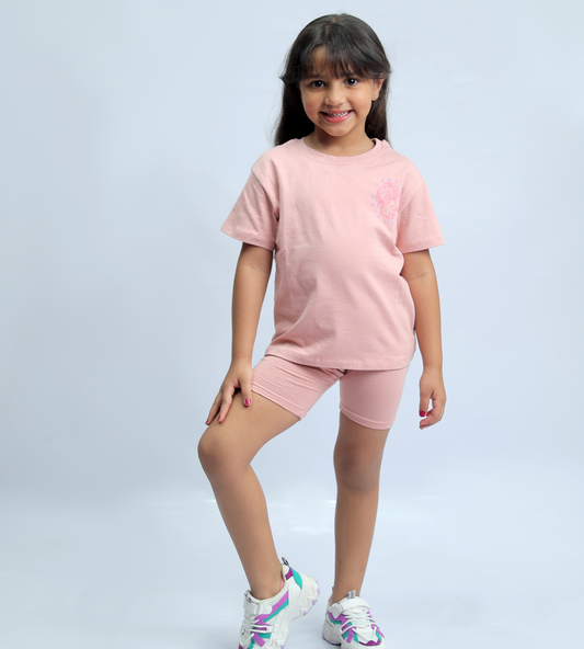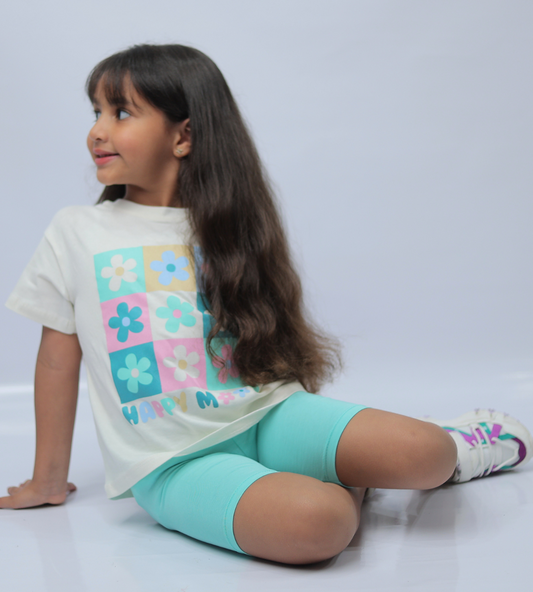 2-Piece Pastel Flowers oversized shirt and bike shorts set